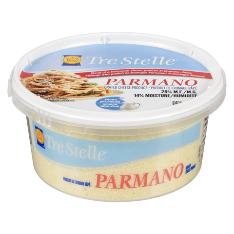 Tre Stelle Grated Parmano Cheese is a flavorful, finely grated cheese blend of Parmesan and Romano that adds a rich, nutty taste to your dishes. Perfect for topping pasta, salads, and soups, or enhancing casseroles and pizza, it’s a versatile staple for any kitchen. Conveniently packaged for easy use, enjoy the authentic taste of Italian cheese with every sprinkle!