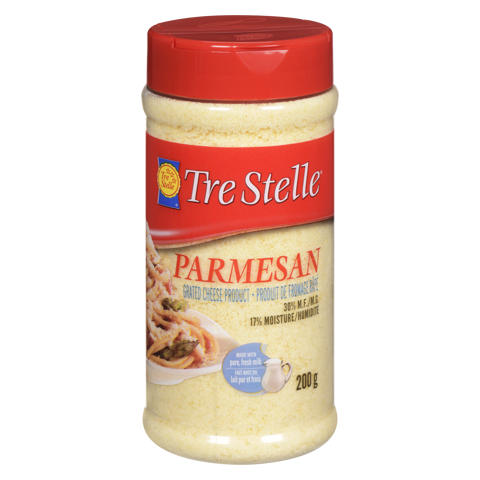 Tre Stelle Grated Parmesan is a classic and flavorful option for adding a touch of Italian authenticity to your culinary creations. This finely grated Parmesan cheese offers a rich and nutty flavor with a hint of saltiness, and is ready to use, saving you time and effort in the kitchen. Whether sprinkled over pasta, salads, or soups, it adds a satisfying taste and texture to enhance all of your favorite recipes.