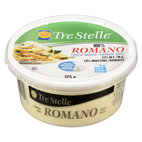 Tre Stelle Grated Romano Cheese is a convenient and flavorful addition to your kitchen, offering a bold and savory flavor with a hint of saltiness, making it a perfect choice for sprinkling over pasta, salads, soups, and more. The convenient grated form allows for easy and even distribution, enhancing the taste of your favorite dishes with its distinctive and robust character.