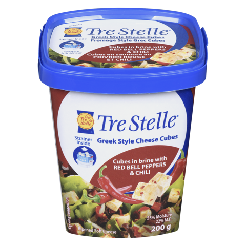 Tre Stelle Greek Style Cheese Cubes with Red Pepper & Chilli offers a bold and flavorful twist on traditional Greek cheese. These bite-sized cubes combine the creamy texture of Greek-style cheese with the vibrant kick of red pepper and chilli, creating a delightful snacking experience. Ideal for adding to salads, antipasto platters, or enjoying straight from the package, they bring a zesty Mediterranean flair to any meal.