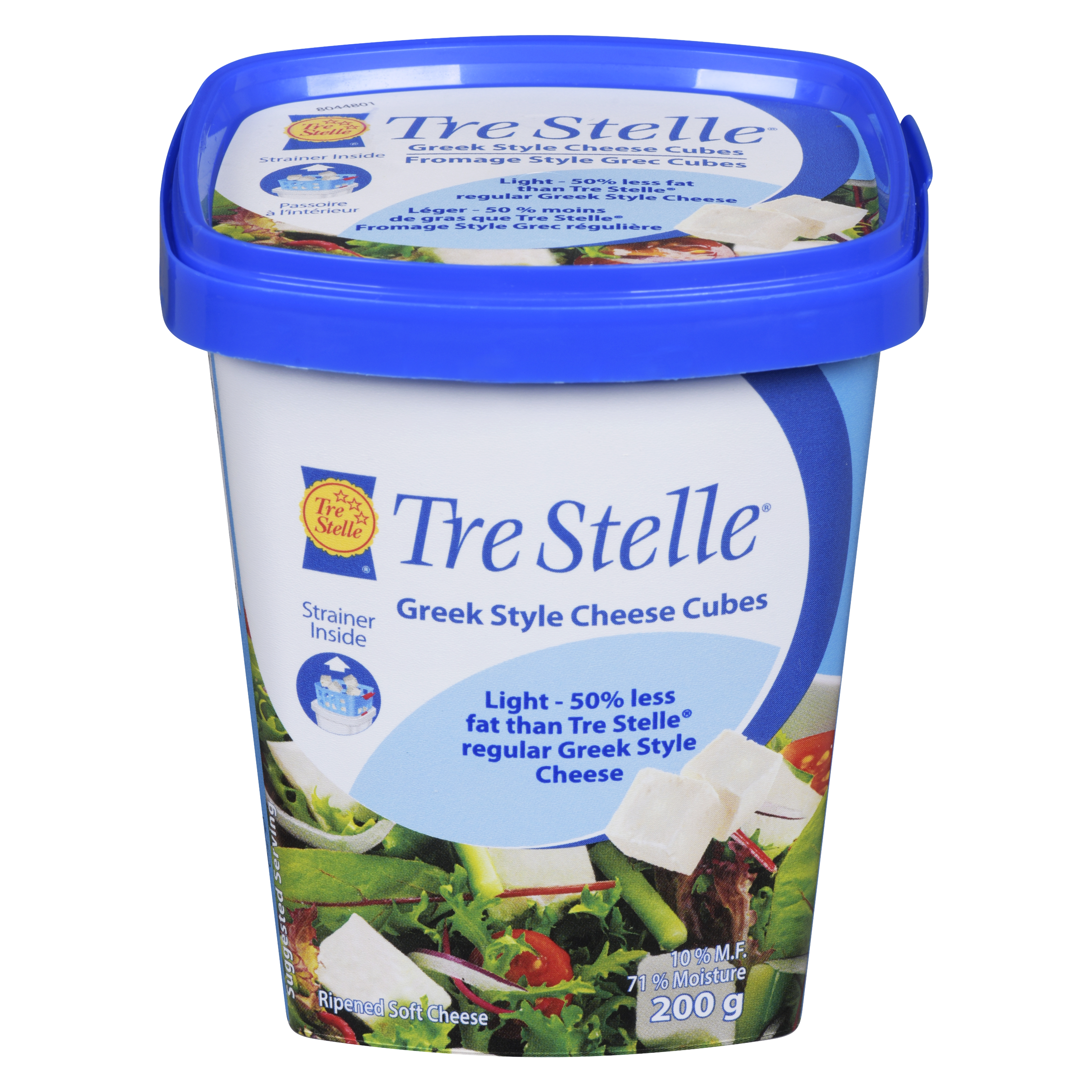 Enjoy the delicious Tre Stelle Light Greek Style Cheese Cubes, a healthy and flavorful option for any snack or meal. These bite-sized cubes offer a creamy texture and zesty flavor, making them perfect for salads, wraps, or as a standalone snack. With lower fat content, they provide a guilt-free indulgence while delivering the authentic taste of Greek cheese.