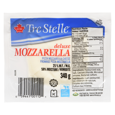 Tre Stelle Mozzarella Ball is a classic and versatile cheese that is beloved for its creamy texture and mild, milky flavor. Made from 100% Canadian Dairy and high quality ingredients, this cheese is crafted to deliver a smooth and elastic consistency. Tre Stelle Mozzarella Ball is perfect for slicing or melting, making it an ideal choice for a variety of dishes. Whether used in pizzas, caprese salads, or melted into pasta dishes, this cheese adds a touch of richness and authenticity to your culinary creations.