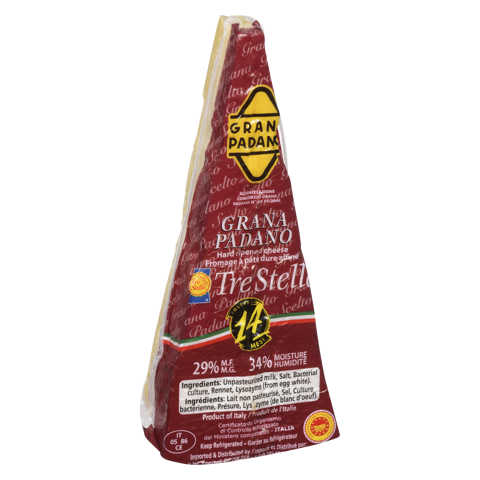 Tre Stelle Grana Padano Scelto is a premium and carefully selected Italian cheese that offers a truly authentic taste. Made from cow's milk, this Grana Padano cheese is aged to perfection, resulting in a rich and complex flavor profile. Tre Stelle Grana Padano Scelto features a dense and crystalline texture, with savory and nutty undertones. It is perfect for grating over pasta, risotto, or salads, adding a distinctive and flavorful touch to your dishes. The exceptional quality and craftsmanship of Tre Stelle Grana Padano Scelto make it a standout choice for cheese enthusiasts and those seeking an exquisite Italian cheese experience.