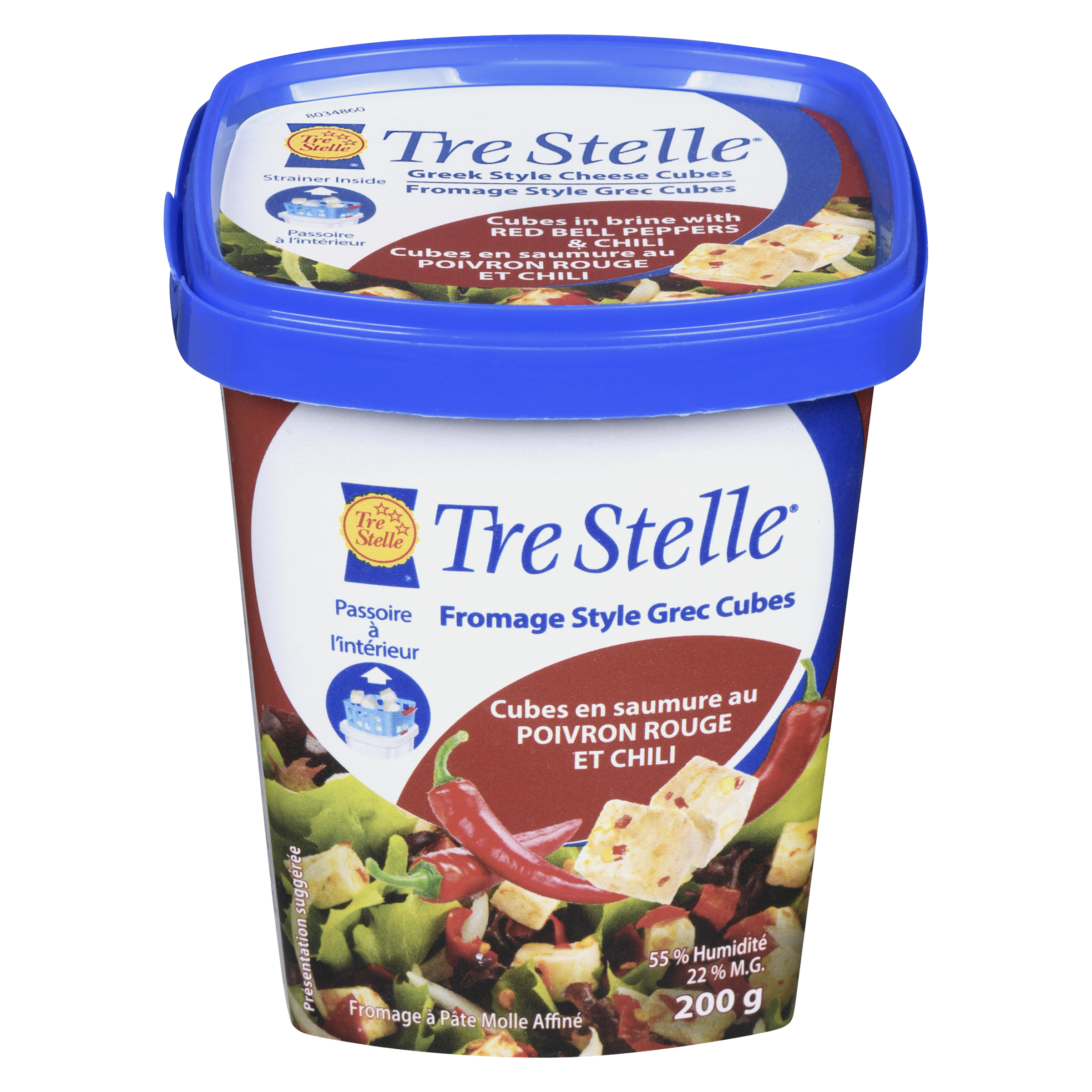 Le fromage à la grecque Tre Stelle en cubes avec poivrons rouges et chilis revisite de manière audacieuse et savoureuse le fromage grec traditionnel. Ces cubes de la taille d'une bouchée combinent la texture onctueuse du fromage à la grecque au goût vif des poivrons rouges et des piments chilis, créant ainsi une délicieuse expérience à savourer comme collation. Idéaux pour agrémenter les salades, les plateaux d'antipasto ou à déguster directement de l'emballage, ces délicieux petits cubes confèrent une touche méditerranéenne relevée à n'importe quel repas.