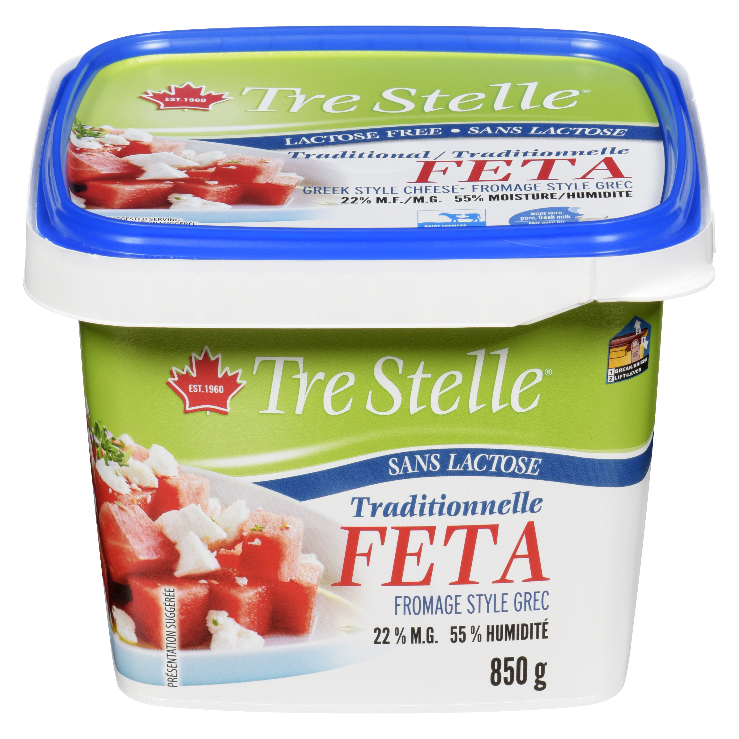 Le fromage feta traditionnel sans lactose Tre Stelle est un fromage délicieux et polyvalent qui convient aux personnes souffrant d'intolérance au lactose. Fabriqué à partir de produits laitiers canadiens à 100 % et d'ingrédients de qualité élevée, ce fromage feta conserve toutes les saveurs et textures traditionnelles du feta classique, mais sans le lactose. Qu'il soit saupoudré sur des salades, émietté sur des pâtes ou incorporé à diverses recettes, le fromage feta traditionnel sans lactose Tre Stelle vous permet de savourer le goût authentique du feta sans avoir à vous préoccuper du lactose.