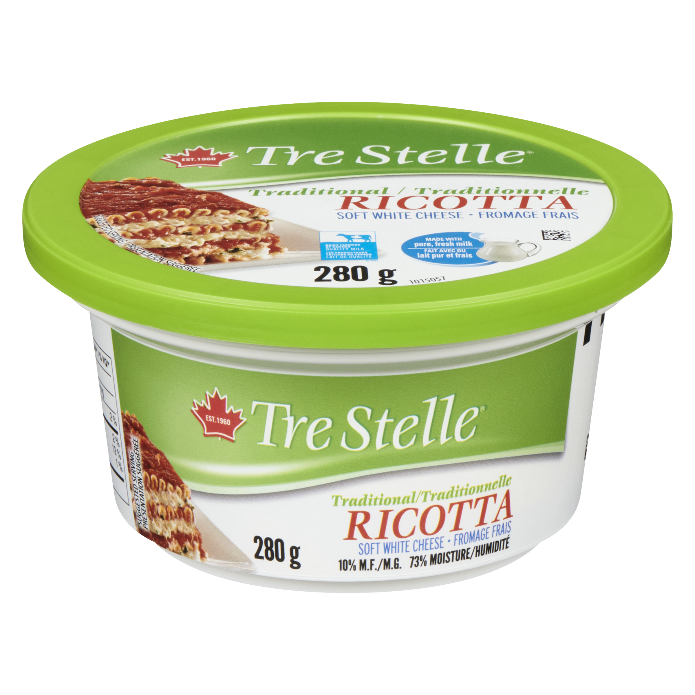 Le fromage ricotta traditionnel Tre Stelle est un fromage luxueux et velouté qui offre une expérience gustative exquise. La ricotta Tre Stelle est élaborée à partir de produits laitiers canadiens à 100 % et d'ingrédients purs, ce qui lui confère une qualité exceptionnelle. Grâce à sa texture lisse et crémeuse, le fromage ricotta traditionnel Tre Stelle propose une saveur douce et délicate qui se marie à merveille à une variété de plats. Qu'il soit utilisé dans des recettes italiennes traditionnelles comme la lasagne, les cannolis ou comme ajout crémeux aux plats du déjeuner, le fromage ricotta traditionnel Tre Stelle procure une touche d'authenticité et de richesse à toutes vos créations culinaires.