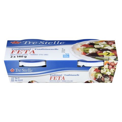 Tre Stelle Traditional Feta Cheese is a classic and authentic cheese that brings the taste of Greece to your table. Made from 100% Canadian dairy it is crafted from the highest quality milk, delivering a rich and distinctive taste that is loved by cheese enthusiasts. Tre Stelle Traditional Feta Cheese is perfect for crumbling over salads, topping grilled vegetables, or incorporating into Mediterranean-inspired dishes. Its versatility and bold flavors make it a must-have ingredient in your culinary repertoire."